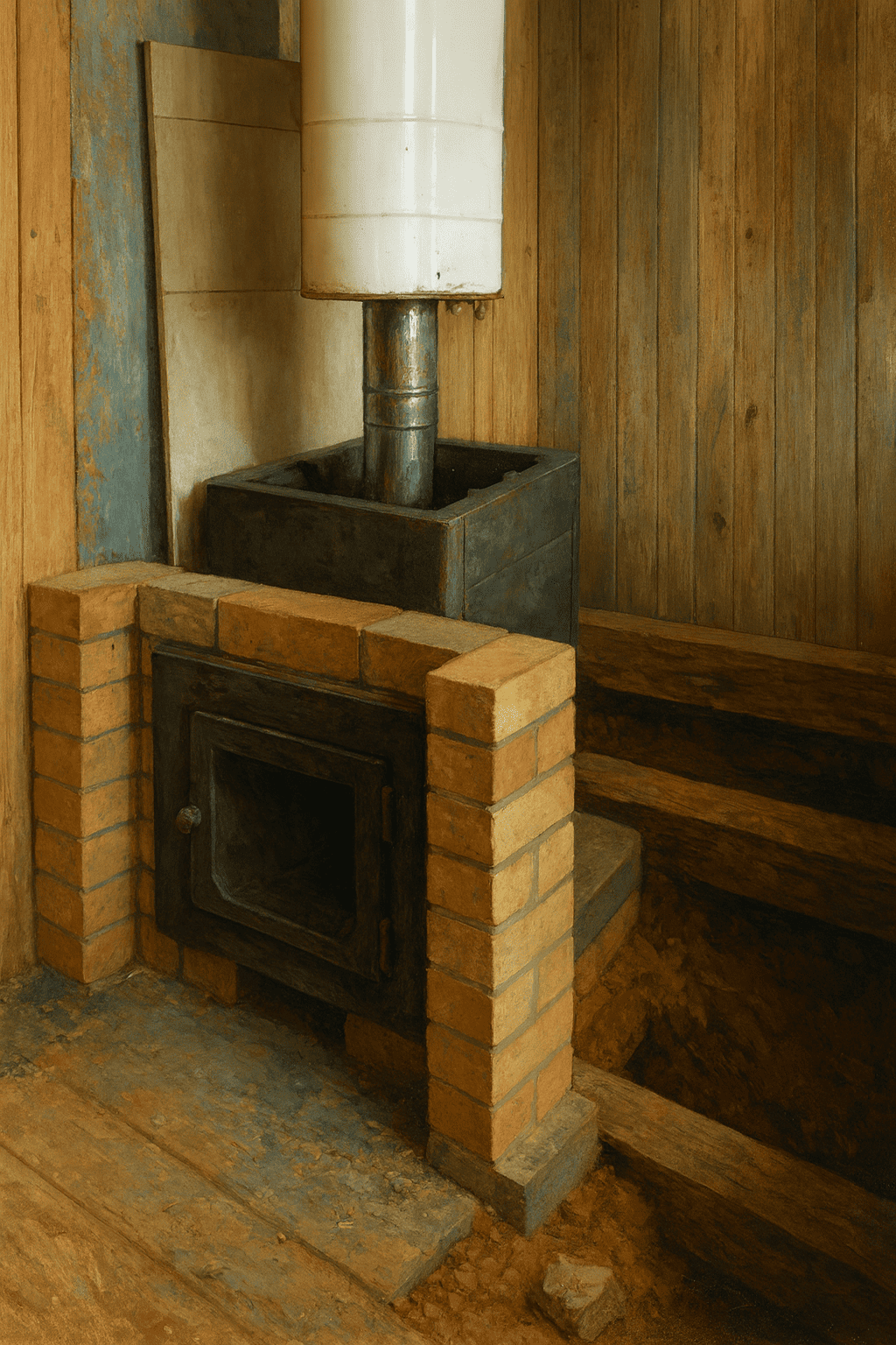 • Экономия на фундаменте: тяжёлую печь ставят прямо на дерево — риск обугливания и просадки.