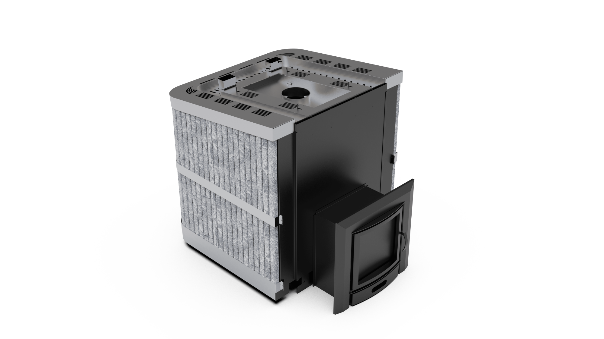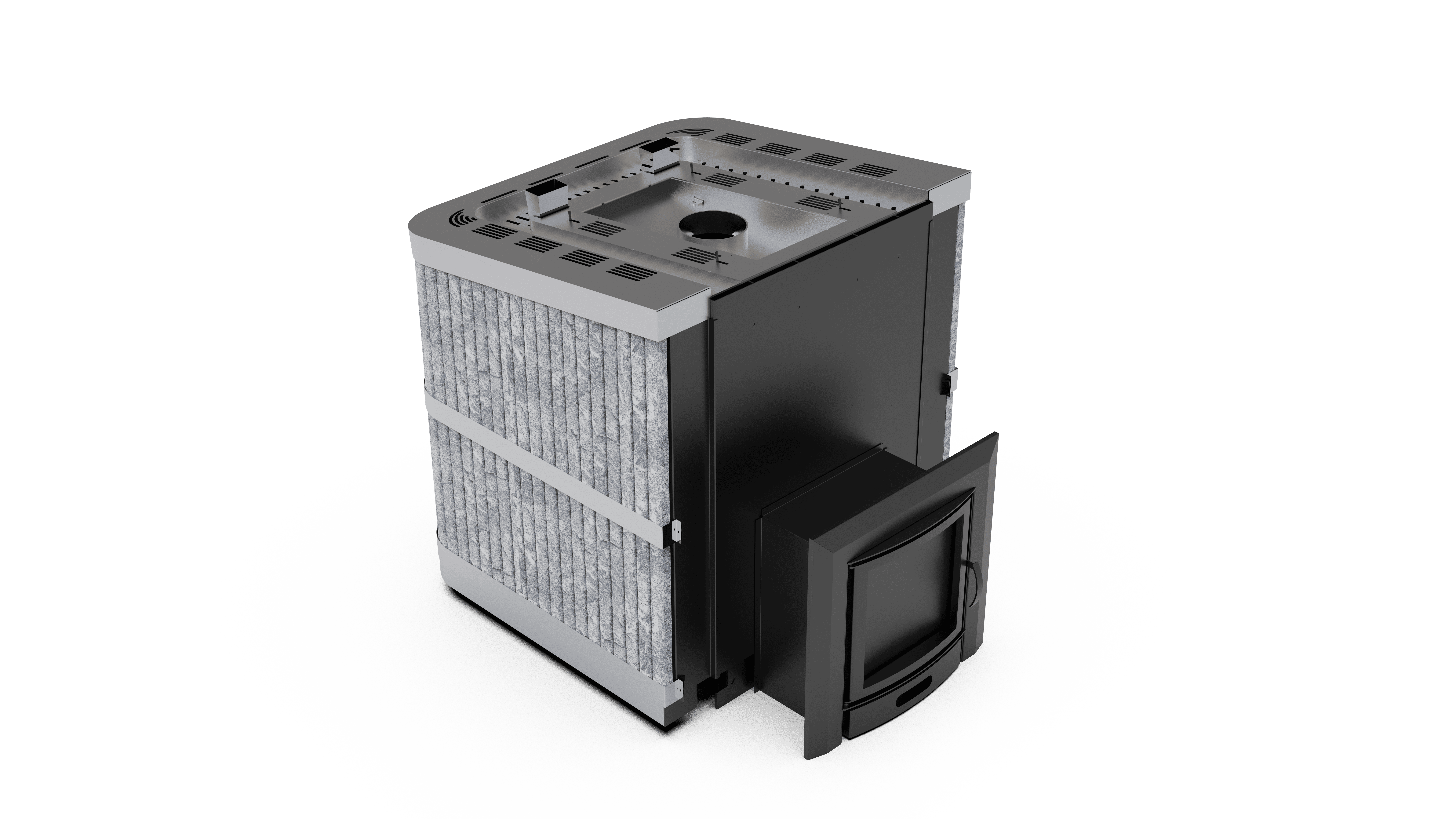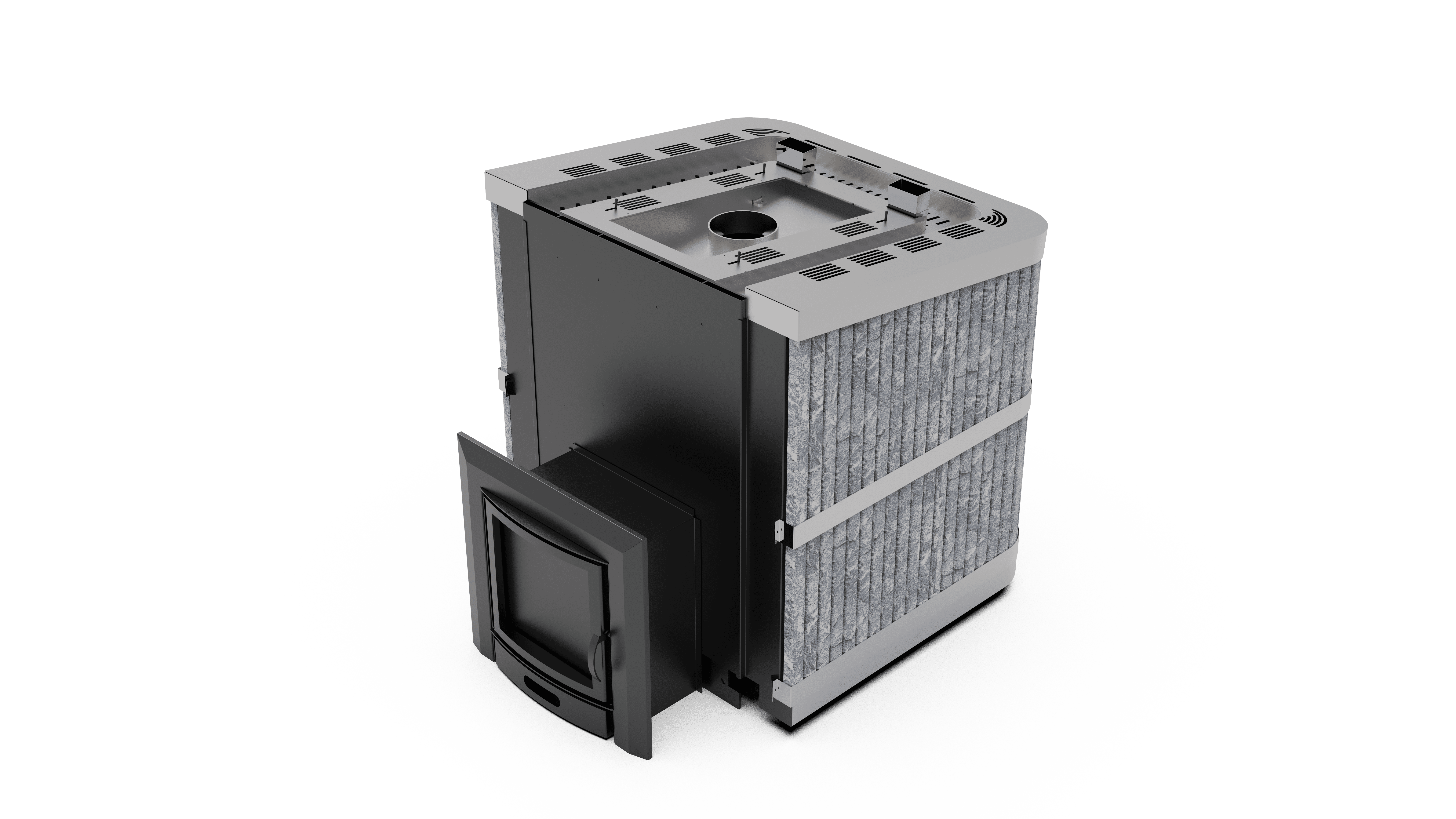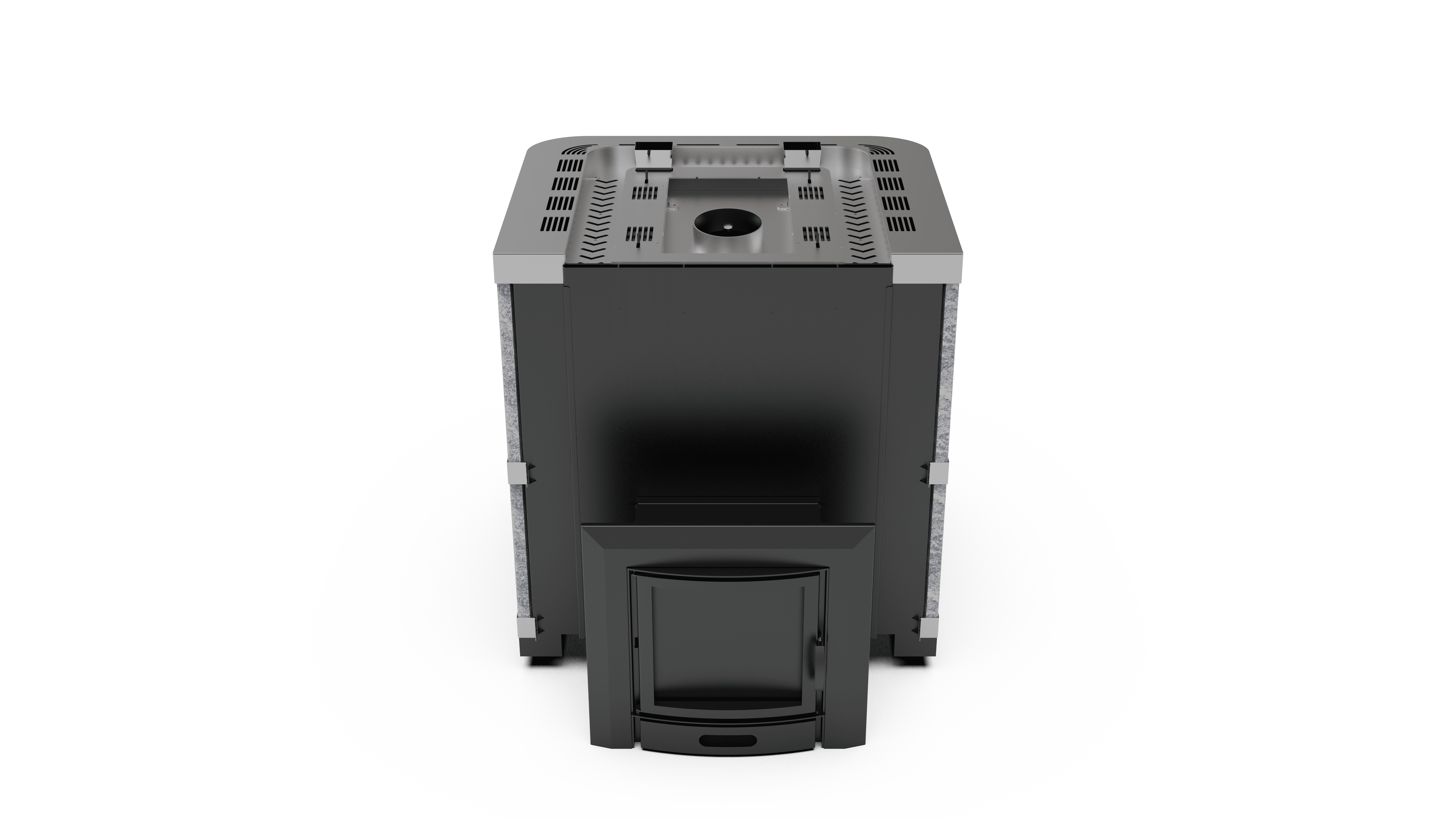 Банная печь с закрытой каменкой и облицовкой из натурального камня пироксенит (по запросу возможен выбор других видов камня) предназначена для интенсивной коммерческой эксплуатации в корпоративных парных, общественных и городских банях, а также в банных комплексах и SPA‑зонах.