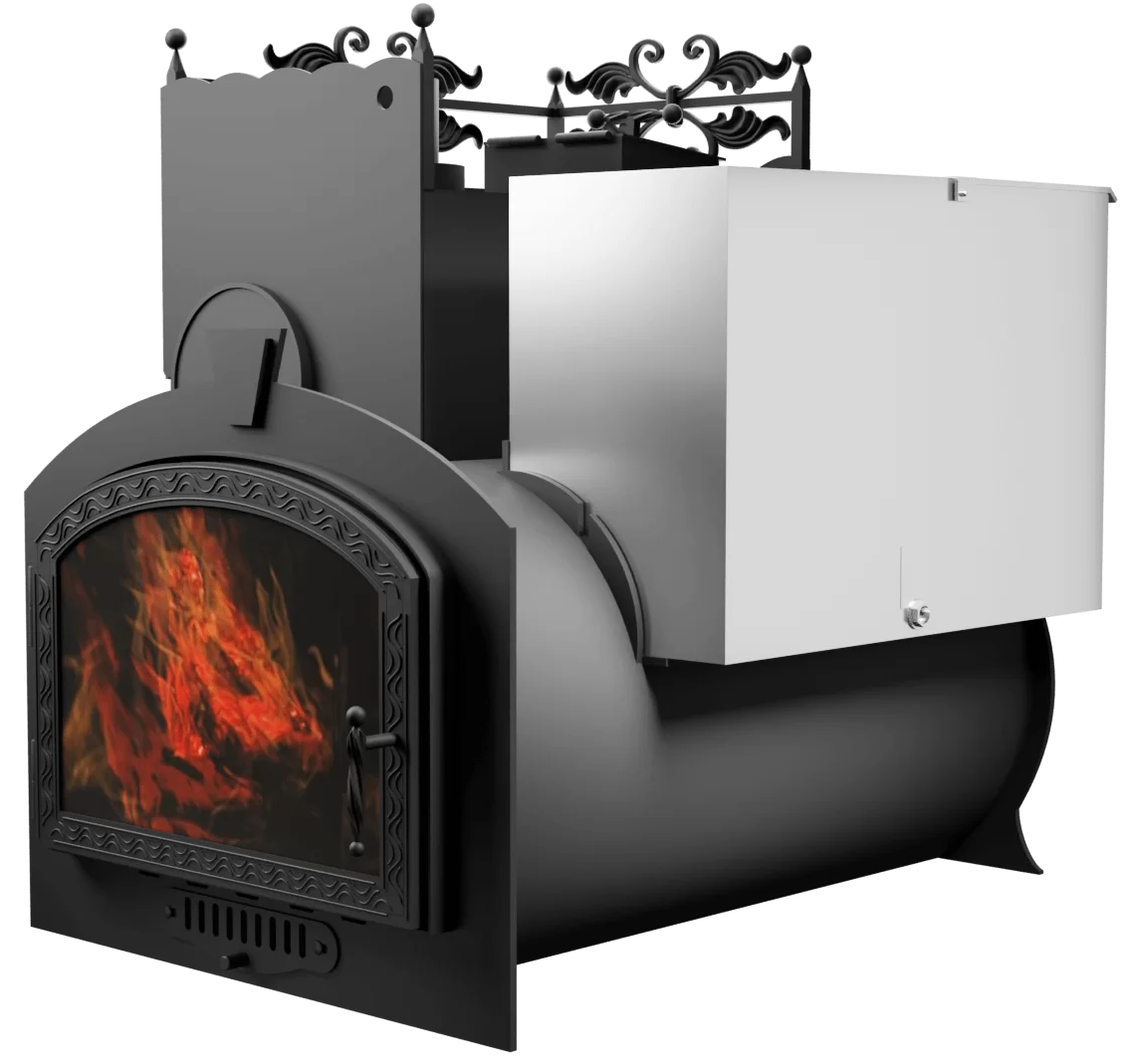 Лидер,не имеющий аналогов, по обогреву бань с отдельным моечным отделением. Большая панормная дверь с термостойким стеклом фирмы ROBAX . В конструкции печи предусмотрен обдув стекла, дымосборный короб, для гермитизации используется высокотемпературный силиконо-керамический термошнур, уложенный в специальный паз. Створка двери выполнена из кованной полосы.